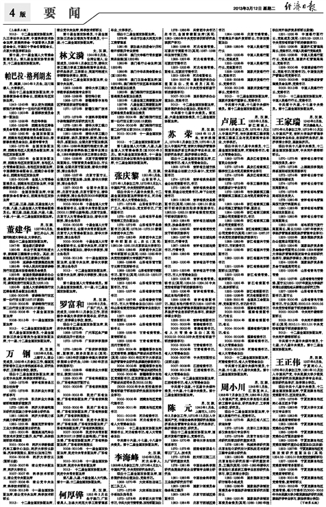 中国人民政治协商会议第十二届全国委员会主席副主席简历