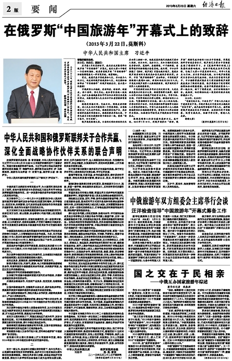 在俄罗斯“中国旅游年”开幕式上的致辞