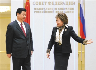 习近平表示,俄罗斯联邦委员会关心中俄地方合作。双方要充分利用中俄地方领导人定期会晤机制,推动两国地方合作健康、有序发展,希望俄方为此创造更多便利条件。双方还要促进旅游、文化、教育合作,夯实友好基础。
