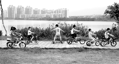 图为广东肇庆儿童乐享城镇化的幸福生活。