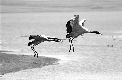3月22日,黑颈鹤在云南昭通大山包黑颈鹤国家自然保护区湿地嬉戏。近年来,随着环境的改善和保护力度的加强,位于云南省昭通市大山包乡的黑颈鹤国家自然保护区迎来越来越多的黑颈鹤栖息于此。 梁志强摄(新华社发)