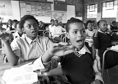 在南非比勒陀利亚的一所中学,初中学生在汉语课上学习拼音。近年来,随着中非关系不断发展、贸易往来逐渐增多、合作领域持续拓宽,很多非洲人对中国的兴趣日益浓厚,学习汉语的热情也正在升温。 新华社发