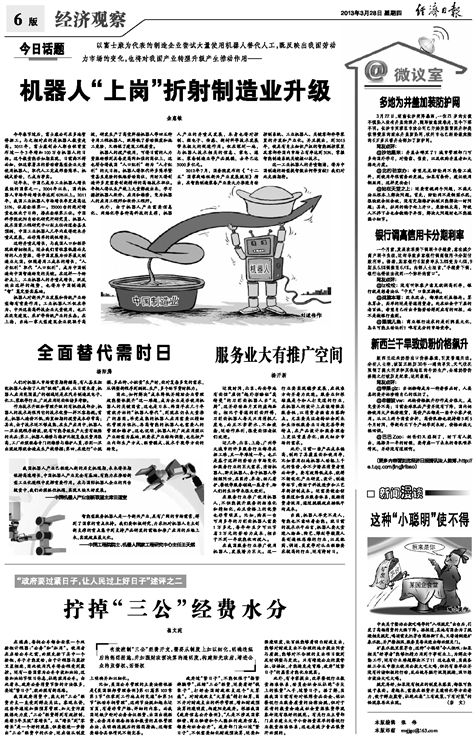 在我国服务行业推广使用机器人,发展潜力巨大。这一行业要实现稳步发展,应找准方向并着力改进。服务业归根结底是个和人打交道的行业,在机器人的设计上应该增强其服务性,以消费者满意为落脚点。尤其要关注老龄社会到来和生活性服务业日趋完善等新特点,在产品设计和服务理念上更注重差异化,满足细分市场的需求。