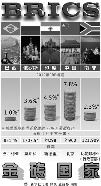 本报巴黎电 记者胡博峰报道:第五届金砖国家领导人峰会在南非德班召开。法国多家媒体引用法新社文章对此次峰会进行了专题报道和评论。法国媒体对此次金砖国家领导人峰会的报道,主要聚焦金砖国家成立开发银行问题,认为这一机构在未来有可能成为与国际货币基金组织和世界银行“平起平坐”的新金融机构。这是因为金砖五国在全球人口、全球贸易以及GDP中所占的比重巨大,特别是巴西、中国和印度三国经济产出总和惊人。分析指出,这也就是为什么金砖五国在世界范围的影响力正在增加,而这正要求世界必须对金砖五国有正确的认识和足够的重视。