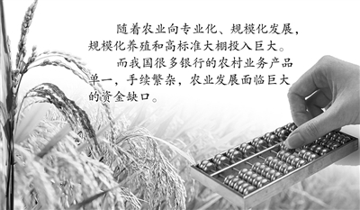 随着农业向专业化、规模化发展,规模化养殖和高标准大棚投入巨大。而我国农村资金的系统性流失巨大,很多银行的农村业务产品单一,手续繁杂,农业发展面临巨大的资金缺口。
