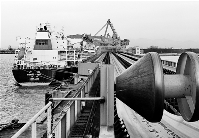 记者日前从河北港口集团获悉,截至3月27日18时,该港口集团今年已累计完成港口吞吐量8775万吨,超计划进度528万吨,创造历年最高水平,实现首季生产“开门红”。图为一艘轮船在秦皇岛港煤炭码头装货。 新华社记者 杨世尧摄