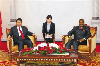 习近平表示,我一踏上刚果国土,就受到刚果政府和人民热情隆重欢迎,体现了两国人民深厚传统友谊。中刚始终真诚相待、友好合作,在涉及对方核心利益的重大问题上坚定地相互支持。明年是中刚建交50周年,希望双方共同努力,深化友好互信,使两国团结互助的全面合作伙伴关系迈上新台阶、实现新跨越。