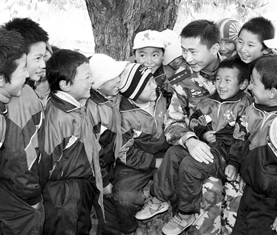 图为西藏林芝边防支队金东边防派出所民警村官、驻村工作队队员刘方普通过讲故事的方式,为金东小学学生进行感恩教育。 闫 峰摄
