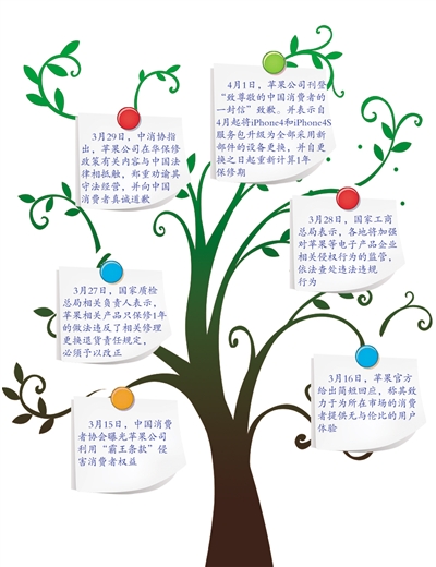 公开致歉信中,虽然仍强调目前消费者的“顾虑或误会”是“沟通不足导致”,但还是作出了4项具体承诺。特别是自4月起,苹果将对iPhone4和iPhone4S产品服务包升级为全部采用新部件的设备更换,并且自更换之日起重新计算1年保修期。这被外界视为,苹果在中国市场的售后服务政策将全面对接中国“三包”规定。