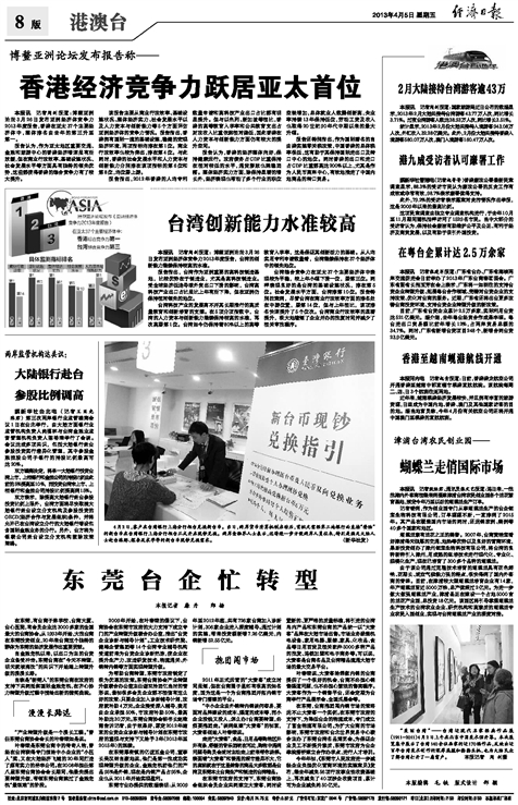 在东莞,有台商子弟学校、台商大厦、台心医院,有会员企业达3000多家的全国最大的台商协会。从1993年开始,大批台商在东莞投资创业,20年来台商这个独特的群体为东莞的经济发展作出重要贡献。