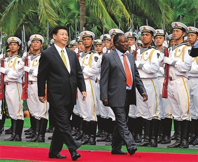 会谈前,习近平为萨塔访华举行欢迎仪式。