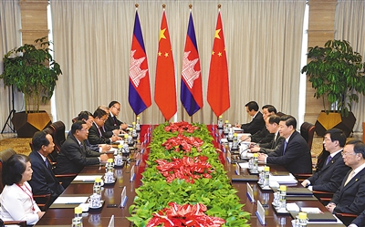 习近平强调,中方高度重视柬埔寨和中柬关系,支持柬埔寨保持稳定、自主发展、改善民生的努力。中方愿同柬方保持高层交往,加强党际交流,分享治国理政经验。中方将加大对柬埔寨农田水利、公路桥梁等基础设施建设的支持力度,扩大对柬有关项目援助和优惠贷款规模。双方决定成立两国政府间协调委员会,希望委员会尽快开展工作,落实好中柬全面战略合作伙伴关系行动计划,扎实推进各领域合作。