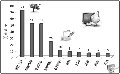 可想而知,安全问题是阻碍NFC技术广泛普及的一个重要因素,这也是目前NFC支付业务大都处于试点阶段、完成的大多是小额支付的原因。《报告》披露,几家代表性企业在安全分支的申请量都不高,可见NFC安全问题的解决方案在中国还没有获得充分的专利保护,安全分支是未来值得关注的方向。
