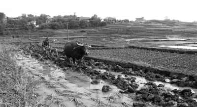 4月7日,四川省宜宾市江安县怡乐镇龙兴村村民在翻犁农田,准备插秧。4月4日开始,连续的降雨让四川南部旱情得到缓解,当地农民抓紧时机进行春耕春播。