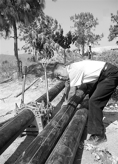 下图 应对旱情,需要提高水资源的利用效率。在攀枝花市仁和区大龙潭乡混撒拉村,高效节水灌溉工程正在紧张施工中。改造后,种一亩芒果需水量将从400立方米减少到80立方米。