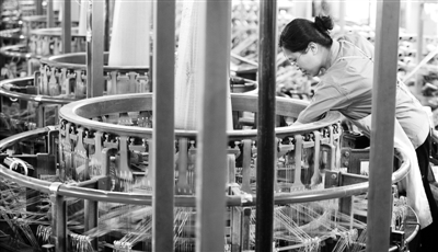 河南孟电集团编织有限公司注重发展循环经济,拉长产业链条,企业的发展质量和效益持续提升。图为织袋车间员工正在生产线上紧张工作。