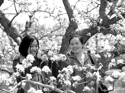 4月16日,北京大兴区庞各庄镇万亩梨园,游客欣赏盛开的梨花。当日,北京大兴区第二十届梨花旅游文化节开幕。文化节期间,将举办风筝艺术展、书画摄影大赛、农产品展卖等系列活动,游客在欣赏梨园花海的同时,还将感受梨乡丰厚的文化底蕴。