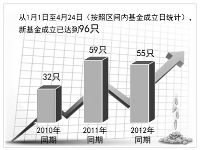 2013年是新基金发行实施“备案制”的第一年。记者统计发现,从1月1日至4月24日,新基金成立已达到96只,而在2010年、2011年、2012年同期数目分别为32只、59只、55只。