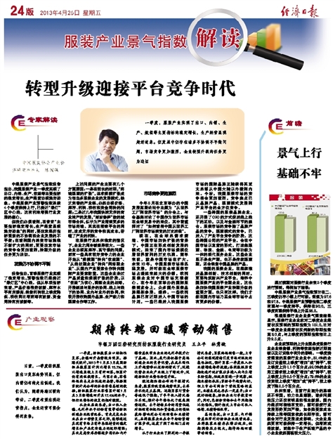 根据服装行业企业景气调查结果显示,服装行业企业家对二季度企业经营状况预测的预期指数为131.0,比对一季度企业经营状况判断的即期指数高8.0点,与上季度的预期指数相比上升9.5点。