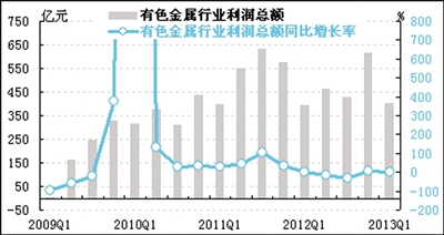 经初步季节调整,一季度有色金属行业利润总额为401.8亿元,同比增长1.8%,增幅较去年四季度回落5.5个百分点,较同期工业平均增速低15.4个百分点。一季度有色金属行业销售利润率为3.3%,较去年同期低0.5个百分点,较全部工业平均水平低1.9个百分点,差距略有扩大。总体看,有色金属行业利润增势仍较弱。
