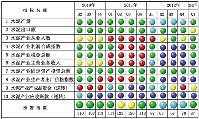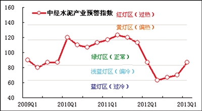 一季度,中经水泥产业预警指数为86.7,持续去年三季度以来的回升态势,较去年四季度上升16.7点,已由“浅蓝灯区”的上分界线区域上行至“绿灯区”的下分界线区域,显示出水泥产业运行状况有所改善。