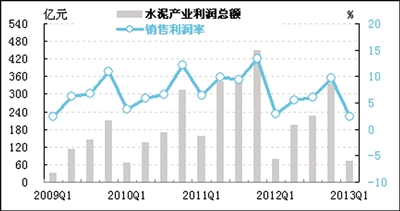 经初步季节调整,一季度水泥产业利润总额为72.2亿元,同比下降9.2%,降幅较去年四季度收窄16.1个百分点,增速显著低于同期全部工业行业平均水平。一季度水泥产业销售利润率为2.5%,较去年同期低0.4个百分点。