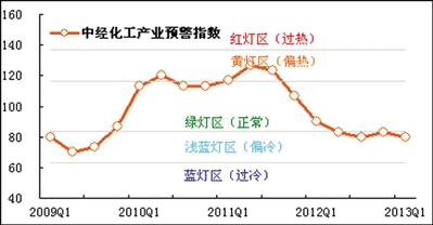 一季度,中经化工产业预警指数为80,较上季度下降3.3点,经济运行的热度略有回落,目前处于“浅蓝灯区”内运行。