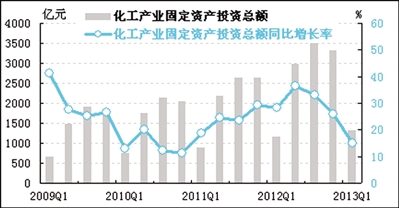 经初步季节调整,一季度化工产业固定资产投资总额为1324.2亿元,同比增长15.1%,增速较上季度回落10.9个百分点;环比下降60.1%。