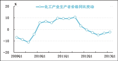 一季度,化工产业生产者出厂价格总水平同比下跌2.4%,降幅较上季度收窄1.1个百分点。