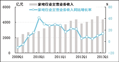 本季度,家电行业主营业务收入、税金总额、固定资产投资和从业人数同比增速继续加快,行业整体运行转好,企业经营状况得以改善。节能惠民工程的实施对家电业的企稳向好起到了积极的推动作用。平稳增长或稳中有升将是2013年家电行业运行的主基调