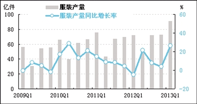 经初步季节调整,一季度服装产量为90.8亿件,同比增长26.3%,增速较上季度加快22.2个百分点。市场需求出现好转,服装企业生产积极性有所提高。但由于人力成本和原材料成本上涨压力依然存在,在一定程度上影响到服装企业开工积极性。
