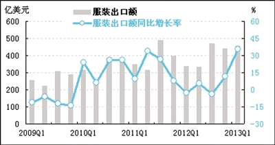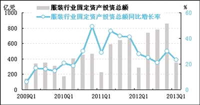 进入2013年,服装行业尽管继续受到外需乏力、内需趋缓、生产要素成本持续上升等因素影响,但全行业通过努力,生产经营显现趋好迹象。在构成服装产业景气指数的6个指标中,服装行业主营业务收入、利润总额、税金总额、服装出口额和从业人数同比增速均较上季度有所加快或降幅收窄;服装行业固定资产投资同比增速则有所放缓