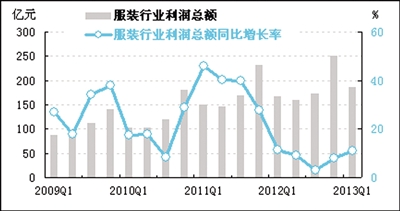 经初步季节调整,一季度服装行业利润总额为185.4亿元,同比增长11.2%,增速较上季度加快3.2个百分点,连续2个季度有所加快。经计算,一季度服装行业销售利润率为5.4%,较去年同期5.5%的水平基本持平,略高于本季度全部工业5.2%的平均水平。目前影响企业盈利水平的主要因素一是原材料成本持续上涨;二是劳动力成本高企,挤压行业盈利空间。