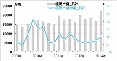 2013年二季度,随着钢材消费旺季的到来,国内需求陆续释放,钢铁行业去库存化过程有望加快,但是产能过剩、供大于求的基本格局不会改变
