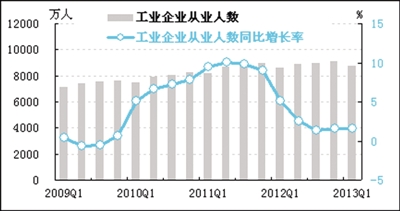 截止到一季度末,经初步季节调整,规模以上工业企业从业人数同比增长1.6%,与上季度基本持平。各行业中,除石油和天然气开采业用工增速放缓外,其余行业用工增长基本平稳。在劳动人口持续减少的背景下,可能导致部分地区出现招工难现象。