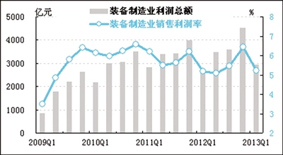 一季度装备制造业的销售利润率为5.2%,与去年一季度持平,表明行业盈利能力基本平稳。