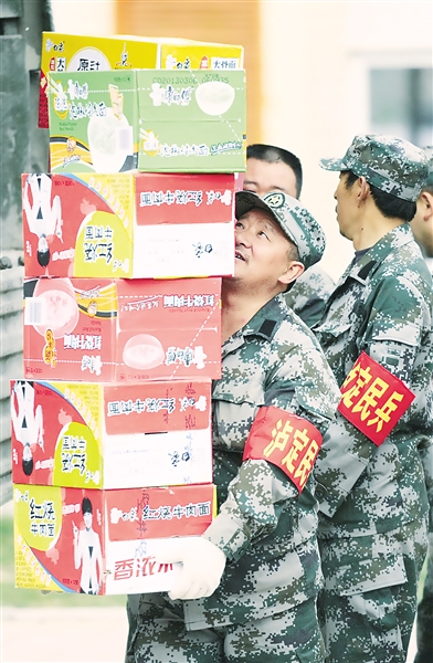 | ⬅4月25日,芦山县的民兵预备役官兵正在搬运救灾物资,确保及时发放给受灾群众。 |