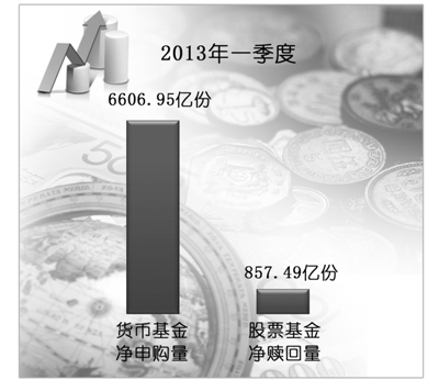 “在股市行情明朗的情况下,货币基金扩容较大,2013年一季度货币基金获得了6606.95亿份的净申购量,与股票基金857.49亿份的净赎回量形成了鲜明的对比。”数米基金研究中心研究员郭寅说。