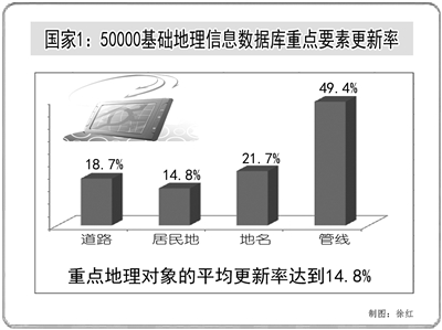 2012版国家1∶5万基础地理信息数据库全面建成。数据库中包含2.4万多幅地形图,一张张貌似简单无奇的图纸,一份份看似枯燥无味的数据,其背后承载着重要的价值。此次动态更新成果全面反映了近年来我国城镇化建设快速推进,高速铁路、高速公路迅猛发展,南水北调、西电东输等国家重大工程建设成果丰硕。我国基础地理信息数据库建设与更新达到国际领先水平。该数据库实现“一年一版图”动态更新,正为全面加快国家信息化发展步伐提供支撑。