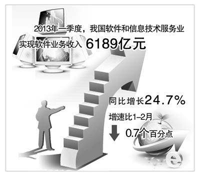 目前,我国的企业软件市场仍处于上升期。工业企业正进行新一轮软件投资,用以促进自身的转型升级。这一趋势已在我国软件业务总收入增长速度中得到证明。根据工业和信息化部的统计数据,中国软件业务总收入年增长率分别为29%(2008年)、25.6%(2009年)、31%(2010年)、32.4%(2011年)、28.5%(2012年),连续5年保持高速增长。即便是在2012年前三季度,受实体经济增长放缓的影响,一些企业的采购和支付出现一定程度的延滞情况,但软件业的增速依然保持在25%-27%的稳定区间。着眼于这一发展趋势,今年软件业几无可能出现“急刹车”现象,预计将继续保持较高的增长速度。
