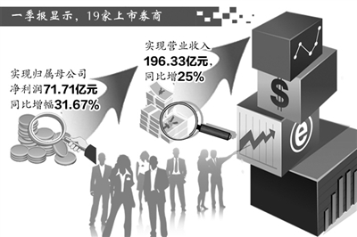 券商业绩在经历去年漫长低迷之后,今年一季度实现华丽转身。一季报显示,19家上市券商净利润同比增幅高达31.67%,创新业务有望成为券商新的利润增长点。