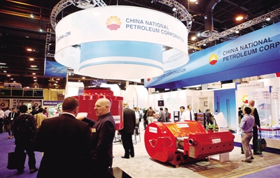 5月6日,观众在美国休斯敦举行的海洋油气技术大会上参观中国石油天然气集团(中石油)的展位。当日,一年一度的海洋油气技术大会(OTC)在美国“能源之都”休斯敦的瑞兰特中心开幕,共有来自全球近2800家公司参展,展会将持续至5月9日。 (新华社发)