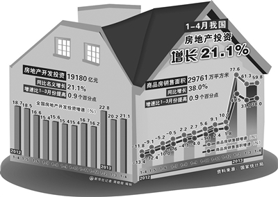前4个月,全国房地产开发投资19180亿元,同比名义增长21.1%,增速比1至3月份提高0.9个百分点。其中,住宅投资13121亿元,增长21.3%,增速提高0.2个百分点,占房地产开发投资的比重为68.4%。全国商品房销售面积29761万平方米,同比增长38.0%,增速比一季度提高0.9个百分点;商品房销售额19847亿元,增长59.8%,增速比一季度回落1.5个百分点。4月末,商品房待售面积42588万平方米,比3月末增加148万平方米。