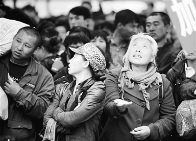5月10日,“插秧客”陈万杰在等候开往三江平原前进镇的“插秧专列”时,用手接着天上落下的雨水。53岁的陈万杰来自黑龙江省望奎县,这是她第12年去三江平原插秧,她说以前一天能挣上百八十块钱就不错了,近年来工钱年年涨,现在能挣200多块钱一天。