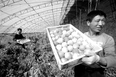 5月14日,天津市宁河县潘庄镇富源专业合作社社员在大棚内搬运鲜桃。日前,天津市宁河县潘庄镇富源专业合作社大棚内的鲜桃开始采摘上市。据了解,当地果农在果树管理中采用了有机肥、蜜蜂授粉和生物防治技术,使桃树健康生长,鲜桃色泽鲜亮、口感香甜。 任丽华摄(新华社发)