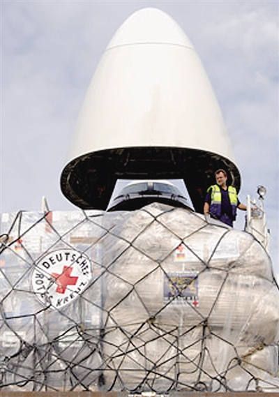 德国红十字会捐助中国地震灾区的移动医院。 新华社发