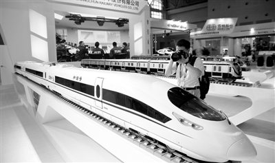 5月16日,一名参观者拍摄由北车集团研制的CRH380C新一代高速动车组。当日,第十六届中国国际投资暨全球采购会在重庆开幕,中国北车集团携多款车型及地铁核心系统亮相展会。 刘长龙摄(新华社发)