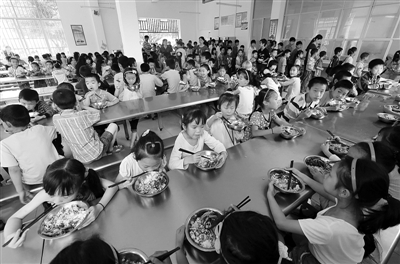 上图 5月15日,在广西柳州市融安县长安镇江口村小学,学生们在吃免费午餐。