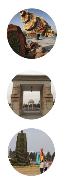 蓝白相间、波涛起伏的海浪广场上,一枚巨型海螺被冲到岸边,岿然而立,变成大连风貌展馆。展馆后,林立的巨型礁石止住海浪匆匆的脚步。沙滩上,形态各异的海洋生物随处散布。巨大的“跃进号”舰船在沙滩的角落停靠,海港工人勤劳的身影在周围环绕。浪漫海韵,讲述了城市与海、人与海共同发展的创业故事。