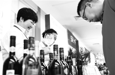 5月25日,西安国际港务区,参展商在向观众介绍葡萄酒。当日,第二届西安国际葡萄酒节暨欧亚葡萄酒博览会举行,来自国内外的参展商及相关产业2000余人与会。近年来,陕西省葡萄酒进口量快速增长,今年一季度达到21.4万升,比去年同期增长1.8倍。
